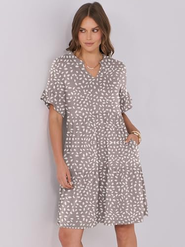 ANRABESS Womens Summer 2025 Trendy Ruffle Short Sleeve V Neck A Line Tiered Flowy Loose Casual Mini Beach Dress with Pockets