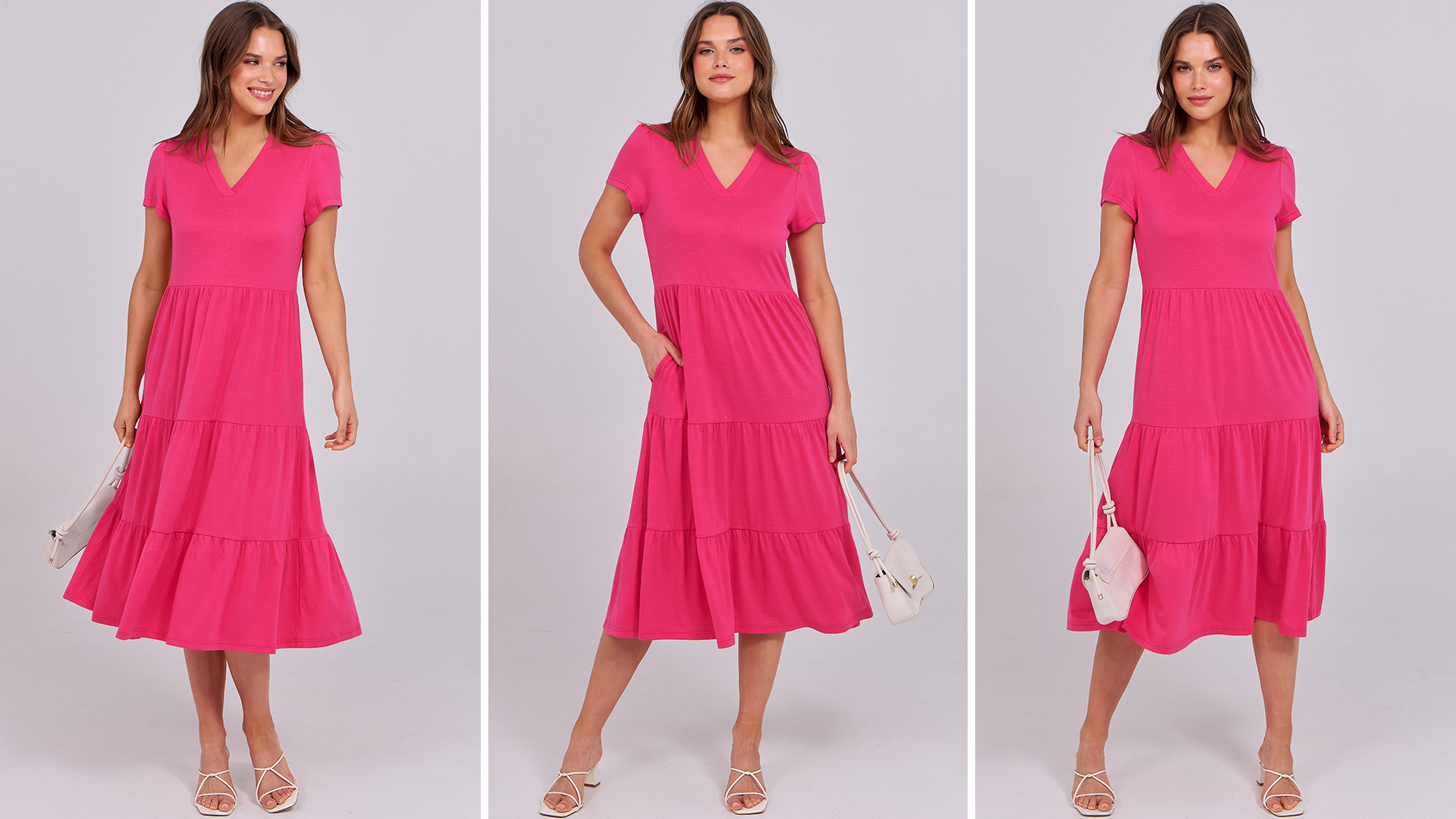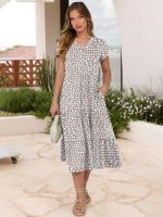 ANRABESS Women’s Summer Casual Short Sleeve V Neck Midi Dresses 2025 Spring Flowy A-line Tiered T Shirts Boho Beach Dress