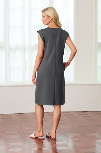 GRECERELLE 2025 Women Summer Round Neck Casual Loose Split Wrinkle-Free Midi Dress with Pockets (XS-3XL)