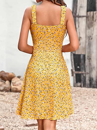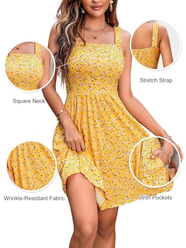 HUHOT Women’s Summer Casual Square Neck Dress with Pocket Cute Sleeveless High Waist A-line Sundress Midi Dresses