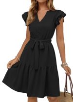 Be the first to review “KIRUNDO Women Flutter Sleeve Summer Dress 2025 Spring V Neck Ruffle Flowy Tiered Knee Length Belted Beach Vacation Sundress”