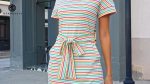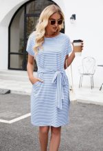 MEROKEETY Women’s Summer Striped Short Sleeve T Shirt Dress Casual Tie Waist with Pockets