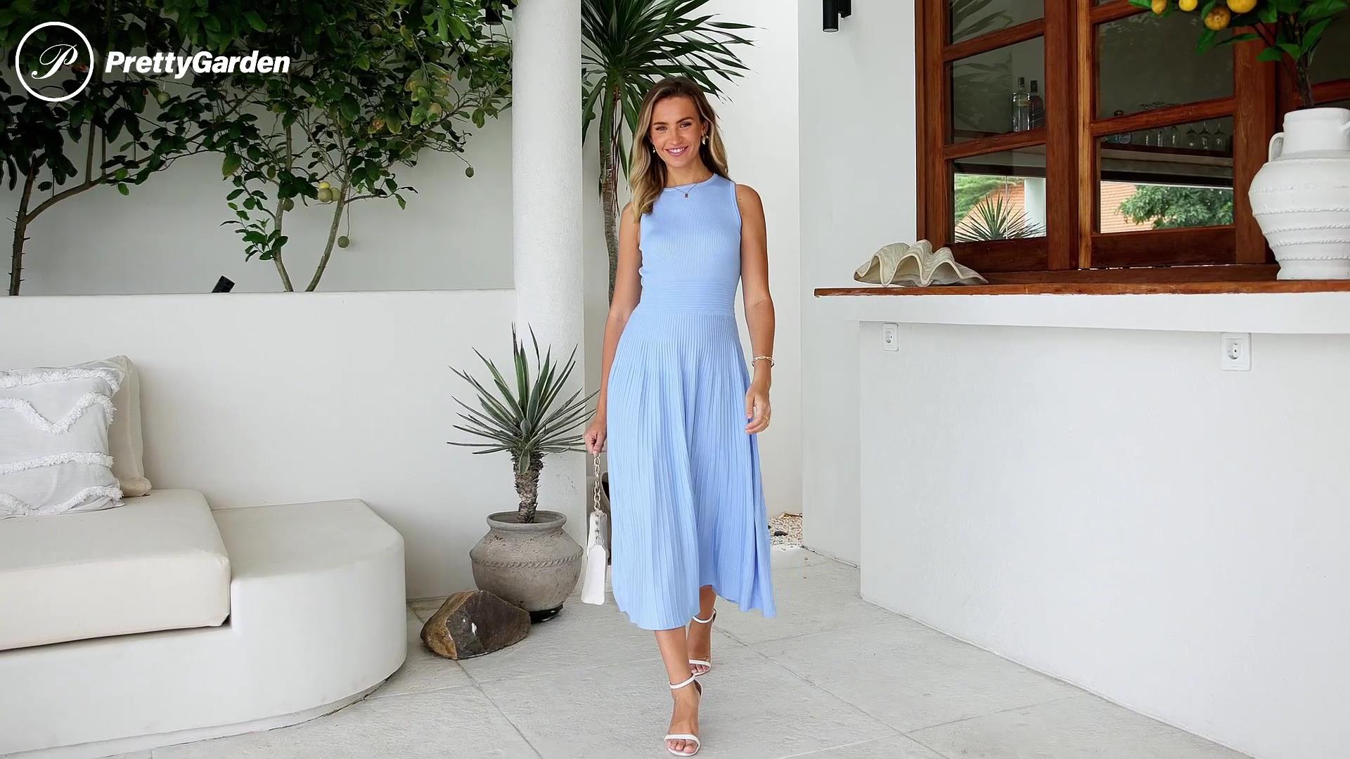 PRETTYGARDEN Spring Casual Dresses for Women 2025 Summer Business Work Midi Sleeveless A Line Pleated Cocktail Dress