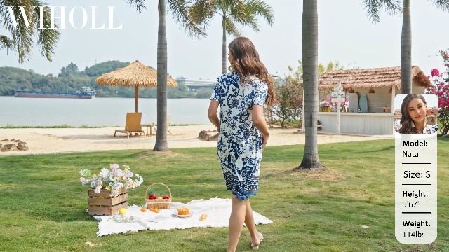 WIHOLL Dresses for Women 2025 Casual Summer V Neck Wedding Guest Dress Short Sleeve Fashion Beach Vacation Clothes