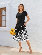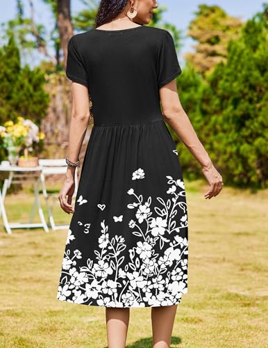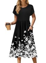 Zeagoo Women Summer Short Sleeve Midi Dress with Pockets Casual Aline Flowy Tshirt Dress Floral Vocation Beach Sundress